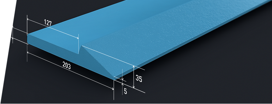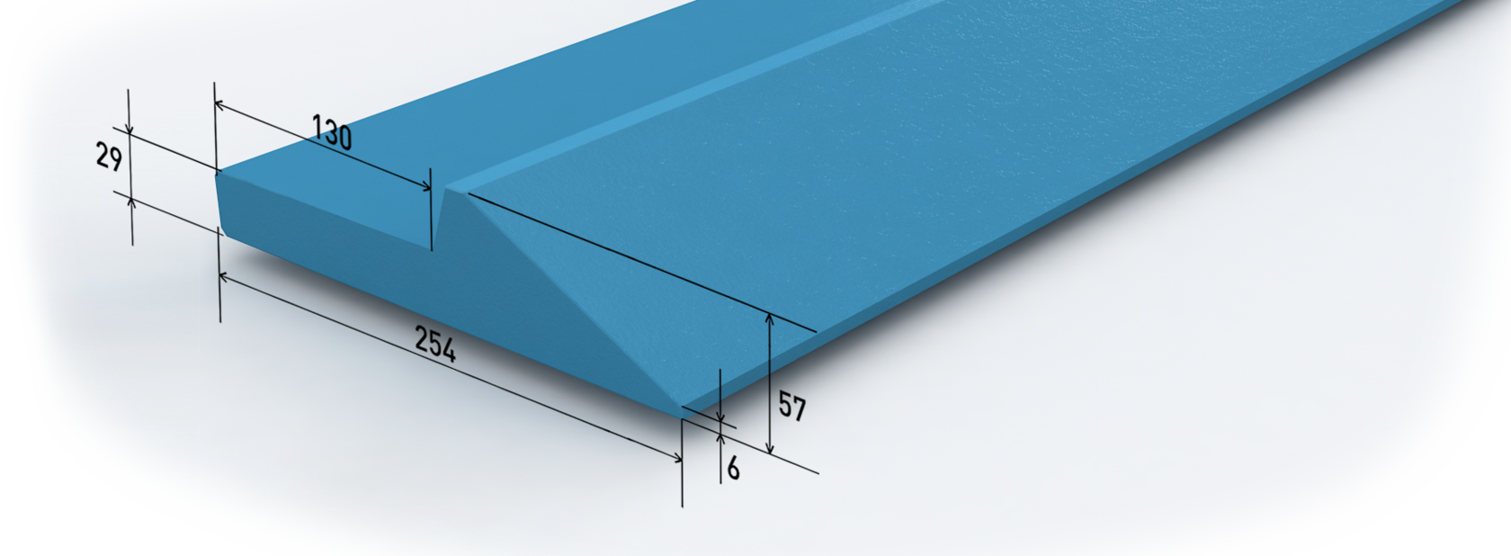 Полустреловидный ножевой профиль производится из шведской бористой износостойкой стали BOROX-500. Как и вся аналогичная продукция шведского концерна BOROX, обладает высокой твёрдостью (500 НВ), неограниченной свариваемостью, отличными показателями ударной вязкости и низкой температурой хладноломкости, что позволяет им успешно работать в условиях крайнего Севера.